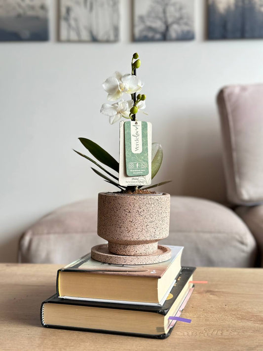 Orquídea mini Peach Charm matera de cerámica